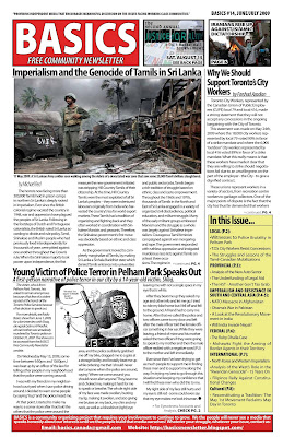 The story of Shak featured in this issue is just one example of violence the Toronto Police are well known for, brutality that escapes both the media lens and any public accountability. Shak’s only “crime” was informing his neighbours that suspicious men (police) were lurking in their backyard. For this the cops pulled Shak off his bike, dragged him out of sight and violently beat him so badly that he later fell unconscious. He is in grade nine. Only one week after that brutal attack, the Toronto Sun released information about 2 black youth in Richmond Hill who were nearly beaten to death by eight masked York cops in September. The cops had broken into their hotel room and tazered them 24 times, leaving one of the youth unconscious and nearly blind in one eye.
